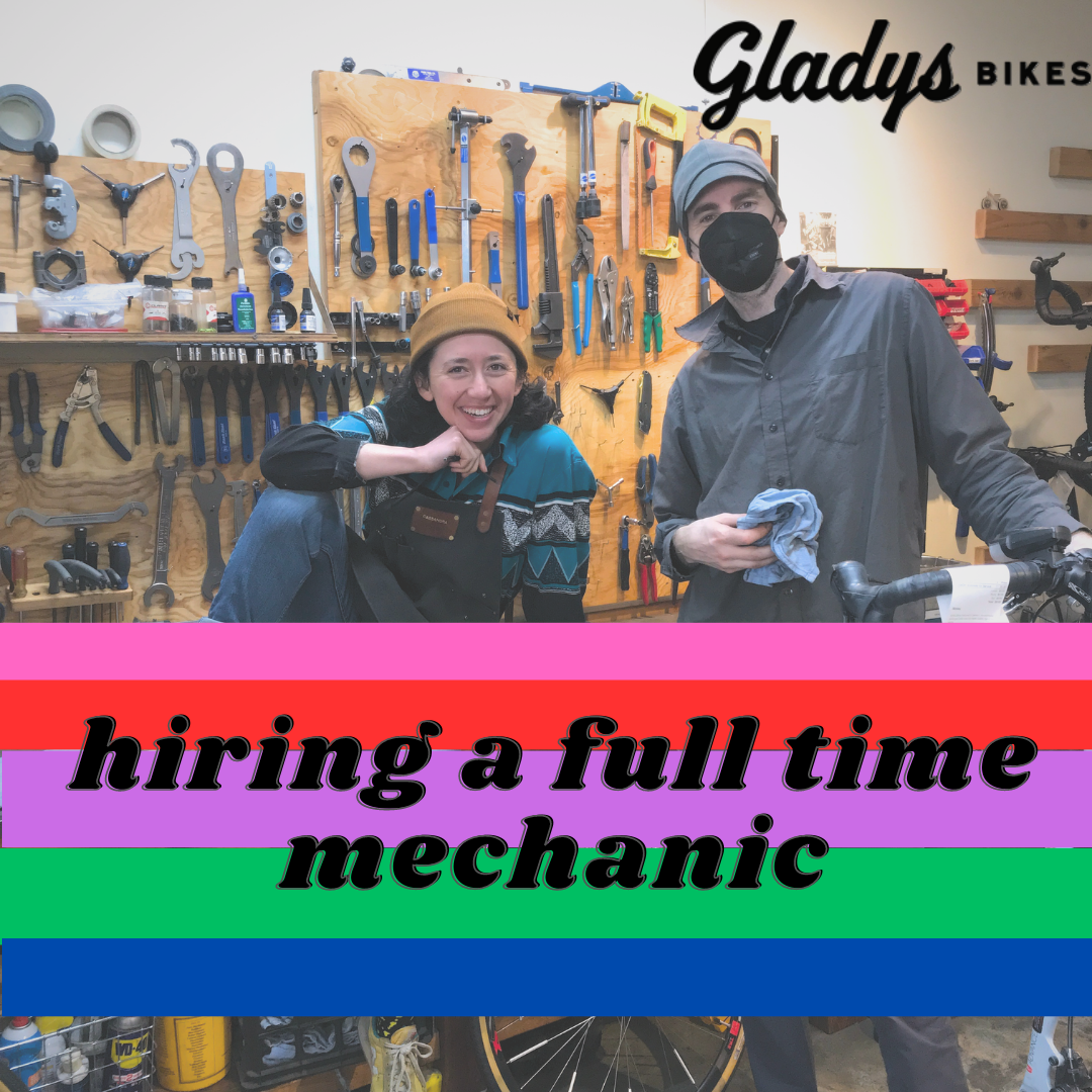 At Gladys we focus on making folks feel welcome as soon as they walk through our door. We don’t make assumptions and we listen. We put a lot of focus on fit, comfort, and efficiency in all styles of riding. We provide high quality repairs at affordable rates and sell bicycles that we feel will last a lifetime, if not more. We are a small team that relies on great communication and attainable goals throughout the work day. We are looking for somebody who is one of 3 employees responsible for scheduling service, completing scheduled service, assisting customers with retail questions, and assisting Saddle Library Members during our open hours.